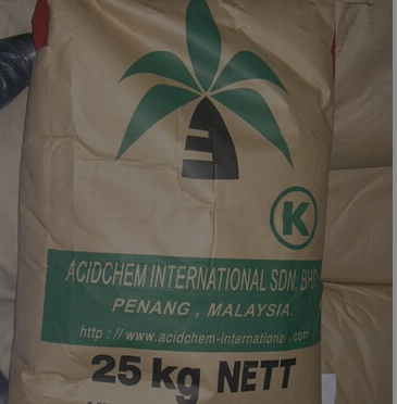 2.用途:棕榈酸,又名软脂酸;①用作沉淀剂、化学试剂及防水剂②消泡剂;制造其他食品添加剂(脂肪酸甘油酯、脂肪酸山梨糖醇酐酯、糖酯等)的原料。亦可作为香料配料,按FEMA规定,在调味料中的最高用量为1.0mg/kg。③生产蜡烛、肥皂、润滑脂、软化剂和合成洗涤剂的原料。棕榈酸用于制造无味氯霉素及各种棕榈酸金属盐,其钠盐或钾盐可用作乳液聚合时的乳化剂,铝盐和锌盐等用于润滑剂、涂料、油黑和增塑剂中。该品具有特殊香气和滋味,按我国 GB2760-89规定,可用于配制各种食用香料,也用作消泡剂和其他食品添加剂的原料。
